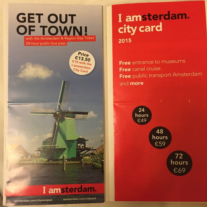 We woke up early in the morning to head to the long awaited Amsterdam! The first thing we did when we arrived at the Amsterdam Central Station was to purchase the 3-day Amsterdam City Card (There’s also the option of 1-day, 2-day or 4-day passes). I simply couldn’t stress enough how great the Amsterdam City Card was! For 69 Euros, we get 3 days of unlimited travel on the subway, bus and trams within the city as well as free admission to a range of museums. For an extra 10 Euros we could get a day-trip card to the outside of Amsterdam for sightseeing (eg. Zaanse Schans). This day trip card is 13.50 Euros without the Amsterdam City Card, so I’d say its a pretty good deal to get the Amsterdam City Card and spend one day travelling to the more remote areas.
