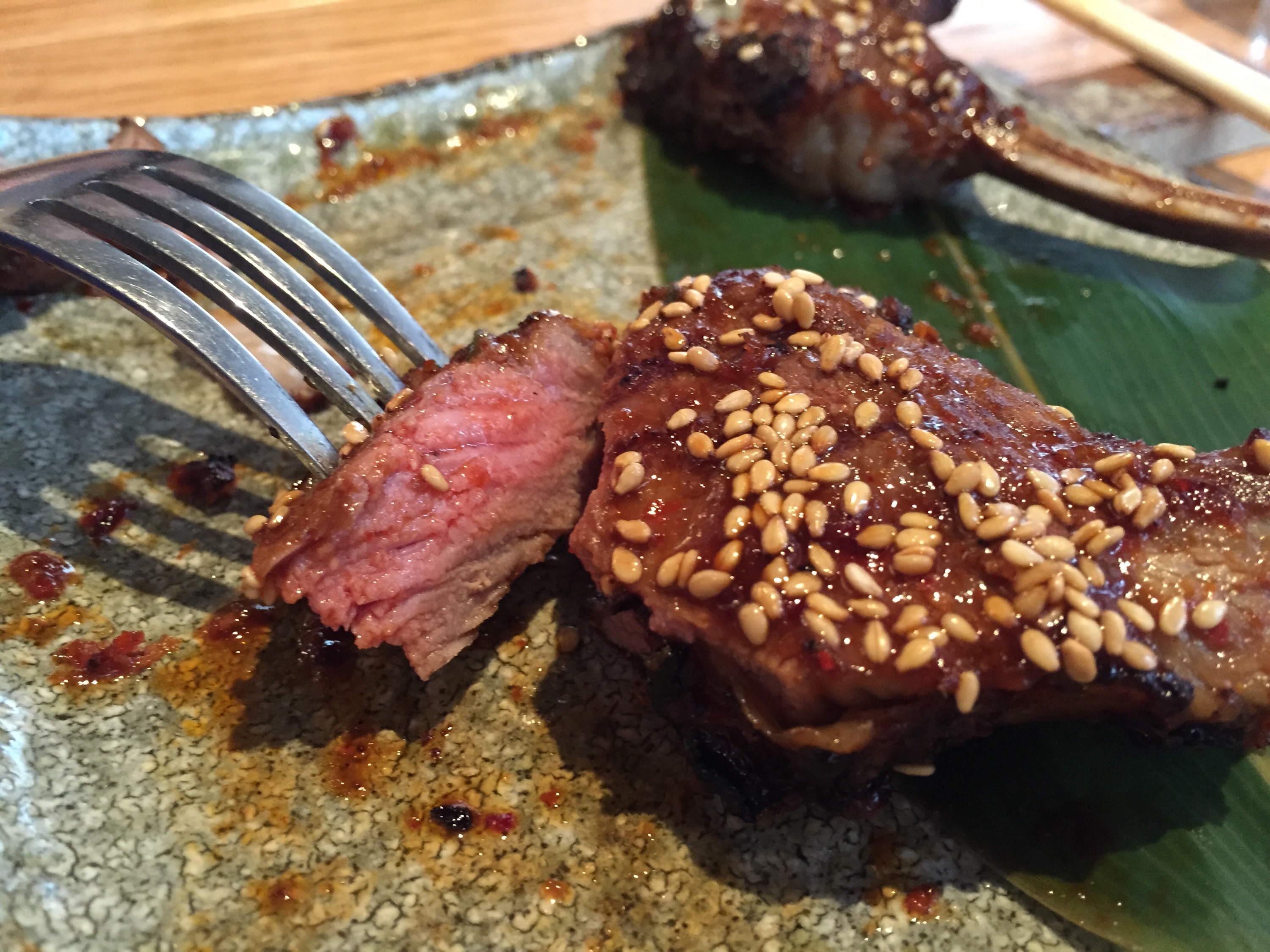 IMG_2319 Published October 12, 2015 at 3000 × 2250 Honetsuki Kohitsuji no Hatchou Miso Fuumi (Hatcho Miso Marinated Lamb Chops)